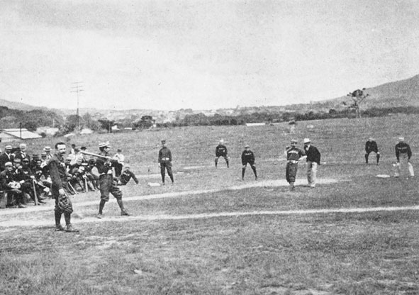 -Bueno, amigos. El hombre de la segunda base no es ao, porque el otro se le atravesó; pero va para la policía. El que le dio el batazo al juez es ao y se va también a la policía. Y el juego se suspende por lluvia. Otro día se discutirá el campeonato.