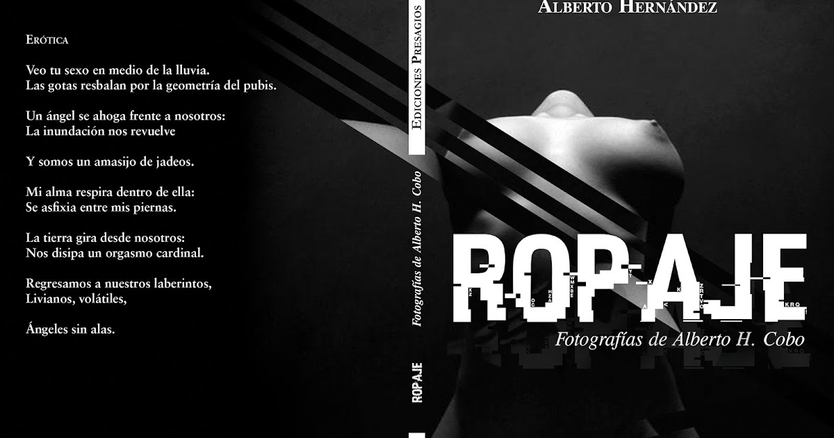 El libro titulado Ropaje (2012) de Ediciones Presagios, México es una creación ejecutada, elaborada o re-creada por Alberto Hernández y Alberto H. Cobo. Sí, así como suena. Alberto Hernández tiene la responsabilidad de escribir los poemas y Alberto H. Cobo tiene la responsabilidad de toda la fotografía. El Alberto de muchos años recorridos, el que descompone e inventa mundos posibles e imposibles, el de Stravagnaza, el de Poética del desatino, Puertas de Galinas, El Sollozo absurdo, Crónicas del olvido y pare usted de contar, el Alberto que, sin temor a equivocarnos escribe aunque no escriba, escribe cuando sueña porque el sueño es ensueño y es escritura para él. Es el poeta de la palabra y el otro Alberto el de la pupila aguda, el poeta de las imágenes, el Alberto que sugiere, el Alberto con el cliquear en el párpado. Estos dos Alberto, estos dos seres se unen para darle corpus a una mirada con ángulos, no sé si isósceles o equiláteros, quizás escalenos pues no existen lados ni ángulos iguales aunque sí existe una unidad en el libro. No sé si cóncavos o convexos según la mirada, desde dentro o desde afuera. En lo que sí coincidimos es que son imágenes que se traducen en Piel, título del primer poema del libro y con subtítulo ejercicio para retornar a una mujer: